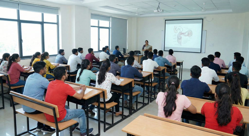 “Learning to Serve” is not just our motto; it is our way of life. We are dedicated to bridging the gap between theoretical knowledge and practical skills. Affiliated with the Rajasthan University of Health Sciences (RUHS), Jaipur, we ensure our curriculum meets the highest national standards.